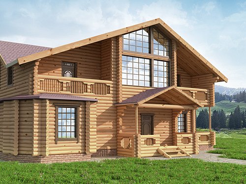 Проект дома из оцилиндрованного бревна ОБ 77/1